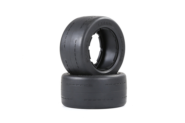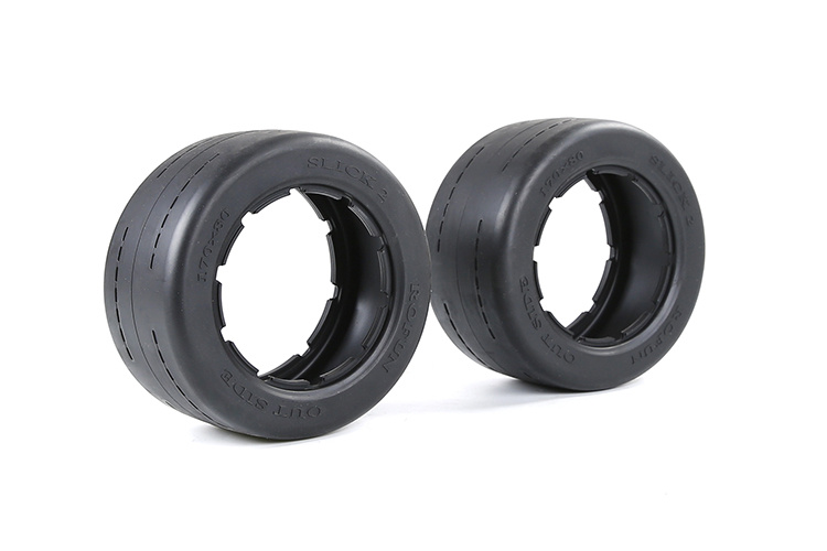 Die BAHA 5B Gen.2 Rear Slick Tyres Skin sind 2 Hinterreifen mit glattem Slick-Profil für maximale Haftung auf festen Untergründen wie Asphalt oder Beton. Das glatte Profil sorgt für eine vollständige Auflagefläche und dadurch für hohe Stabilität und optimale Traktion bei hohen Geschwindigkeiten.