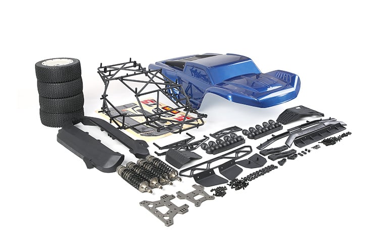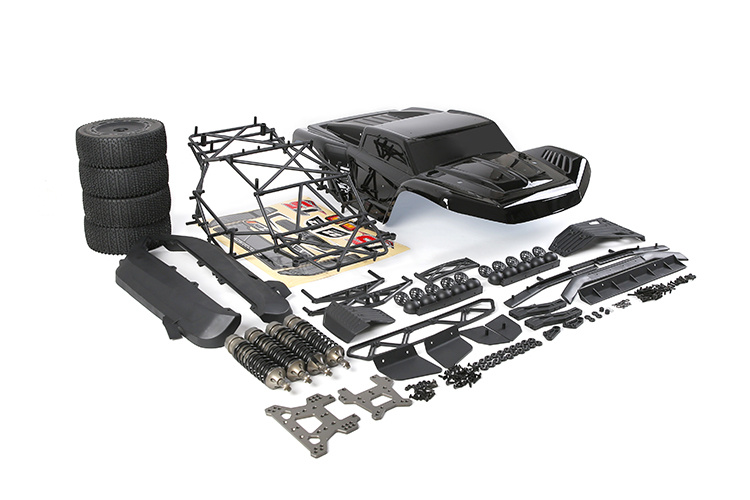Das Set enthält eine fertig lackierte T5 Karosserie (wahlweise Blau oder Schwarz) sowie einen kompletten Reifensatz, sodass sowohl Optik als auch Funktion sofort auf T5-Niveau sind. Perfekt für Umbauten, Upgrades und Off-Road-Einsatz.