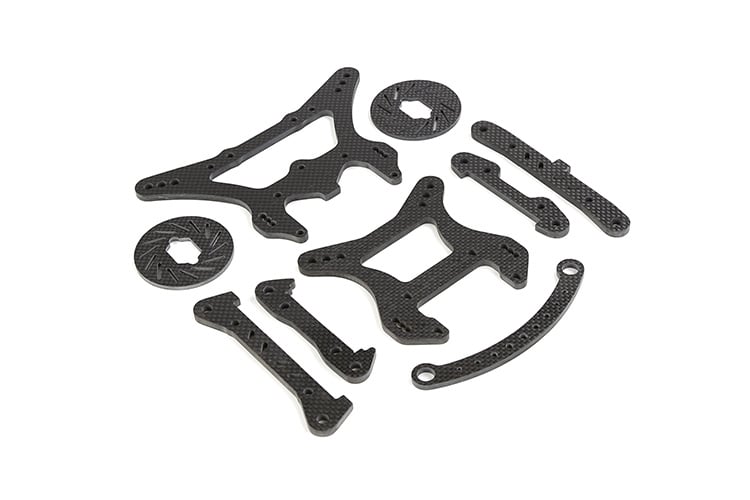 Das Rovan / Losi 5ive-T oder LT Carbon Fiber Kit (Artikel 87075) ist ein vollständiges 5 mm Carbon Upgrade-Set zur Verstärkung von Chassis, Fahrwerk und Bremssystem.