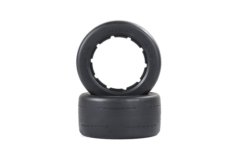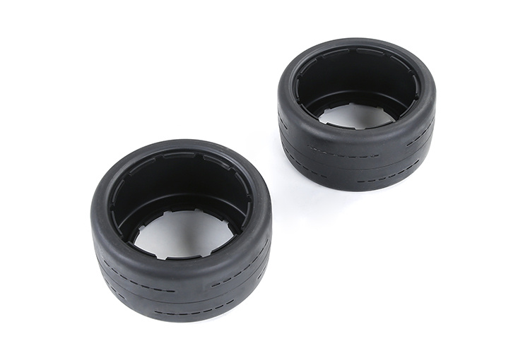 The BAHA 5B Gen.2 Rear Slick Tyres Skin is a set of 2 rear slick tyres designed for maximum traction on hard surfaces such as asphalt and concrete. The smooth tread allows full surface contact, providing excellent stability and grip at high speeds.