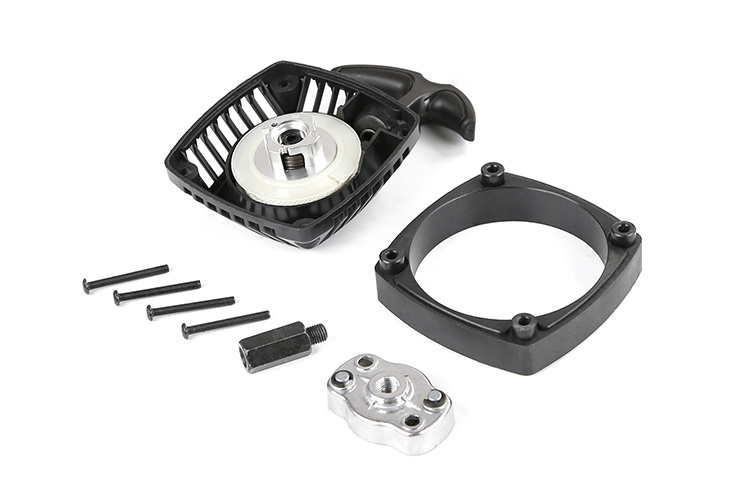 Easy-start pull starter with CNC metal turbine (red or silver) with attachment for use on standard flywheel