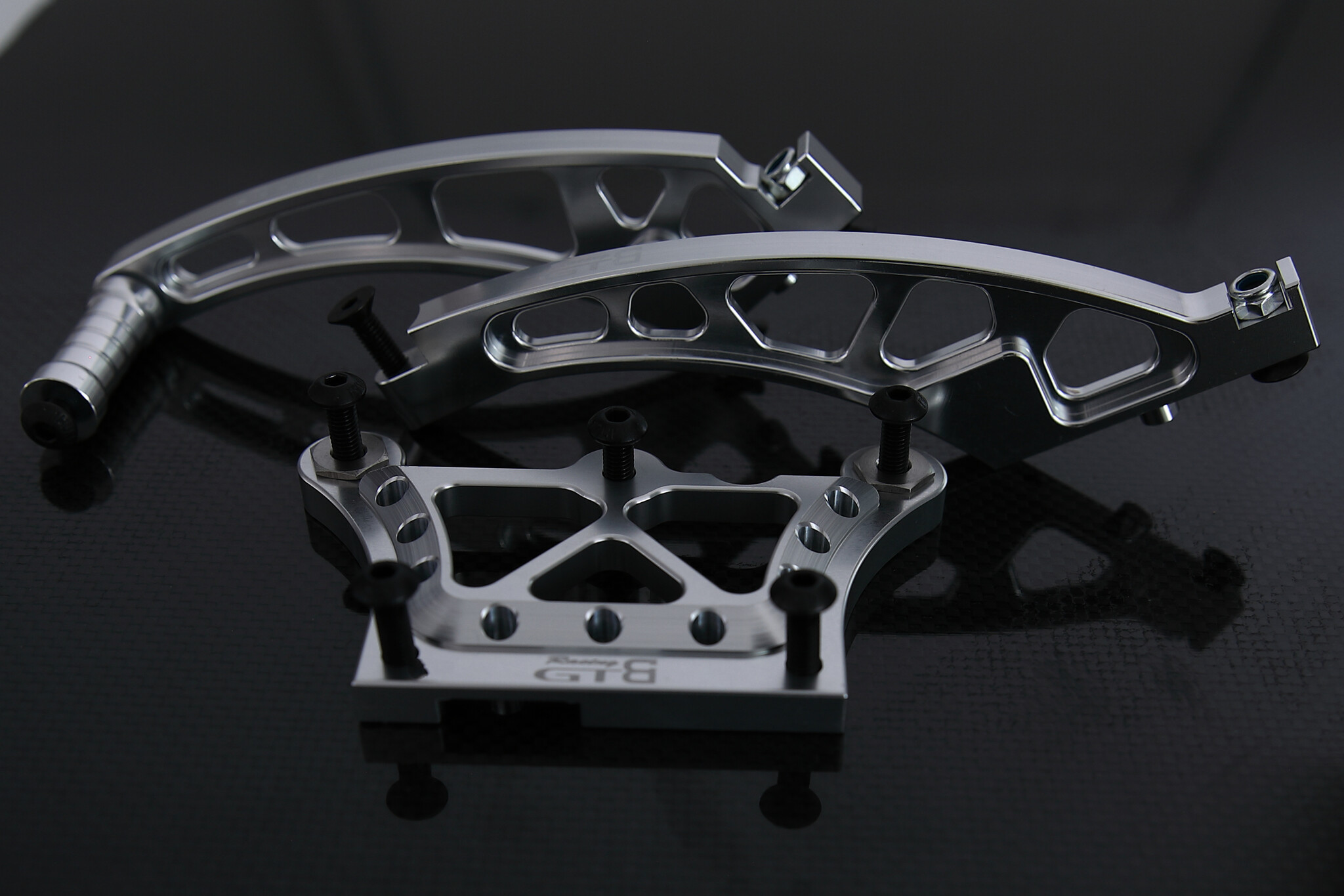 Aluminium bovenplaat aan de voorzijde, chassisbeugel aan de voorzijde en chassisbeugel aan de achterzijde.